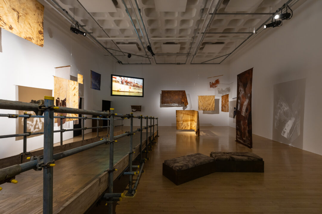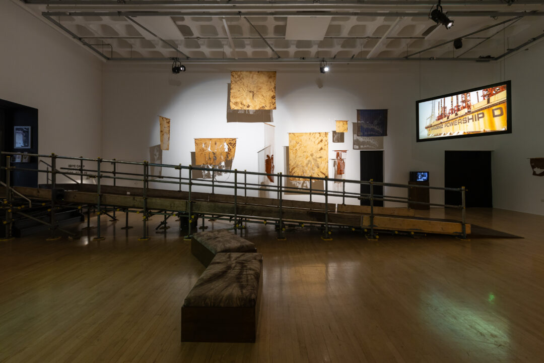 Bonington Gallery is delighted to announce layt de kam, a newly commissioned body of film and textile work by multi-disciplinary artist Ibiye Camp, exploring the complex interplay between infrastructure, care, and resilience along the coast of West Africa.