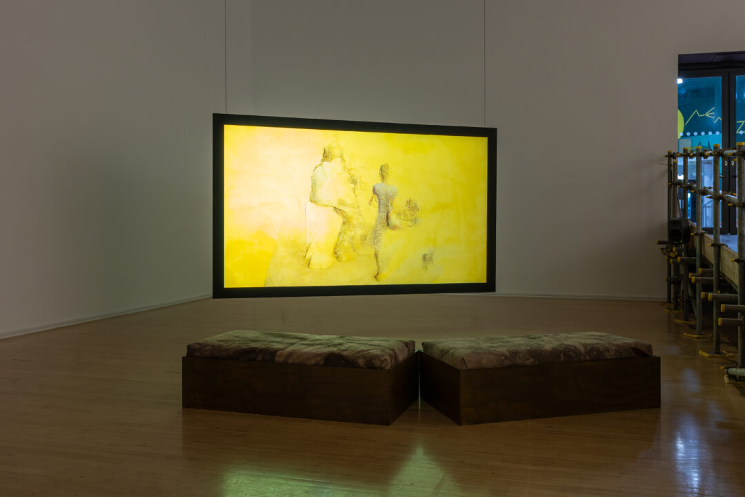 Combining spatial intervention, film and textiles, the exhibition will examine how brutalist infrastructure looms ominously over the intimate and everyday life on the shore. Central to the exhibition is a new film, GLOW, a speculative child’s tale that imagines the arrival of this foreign visitor who brings light. Created using point cloud reconstructions, the trace of the landscape is dependent on illumination, shadows and reflections to create the shapes and forms.