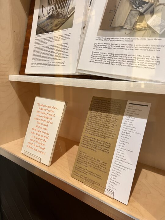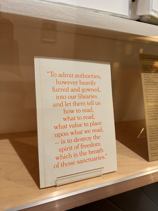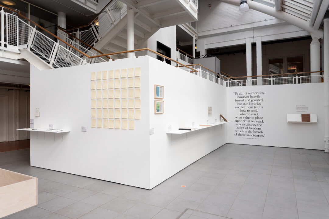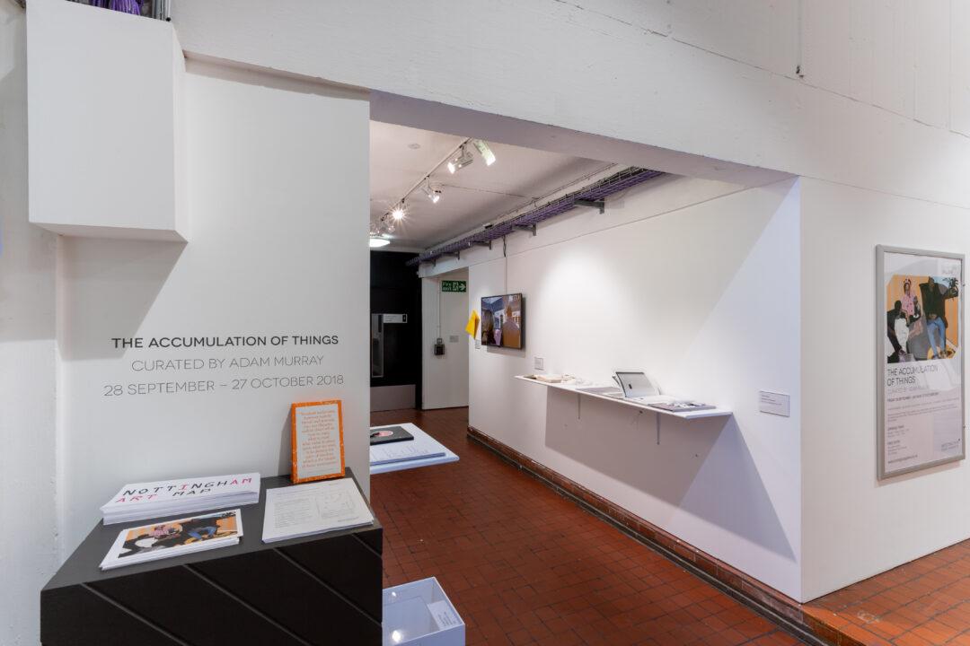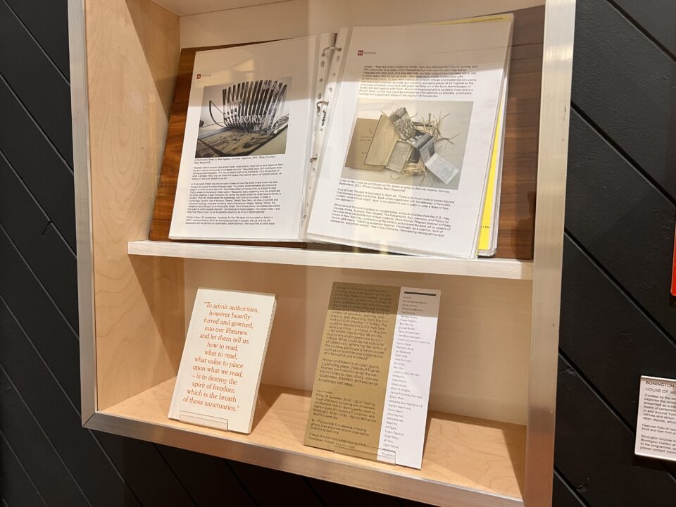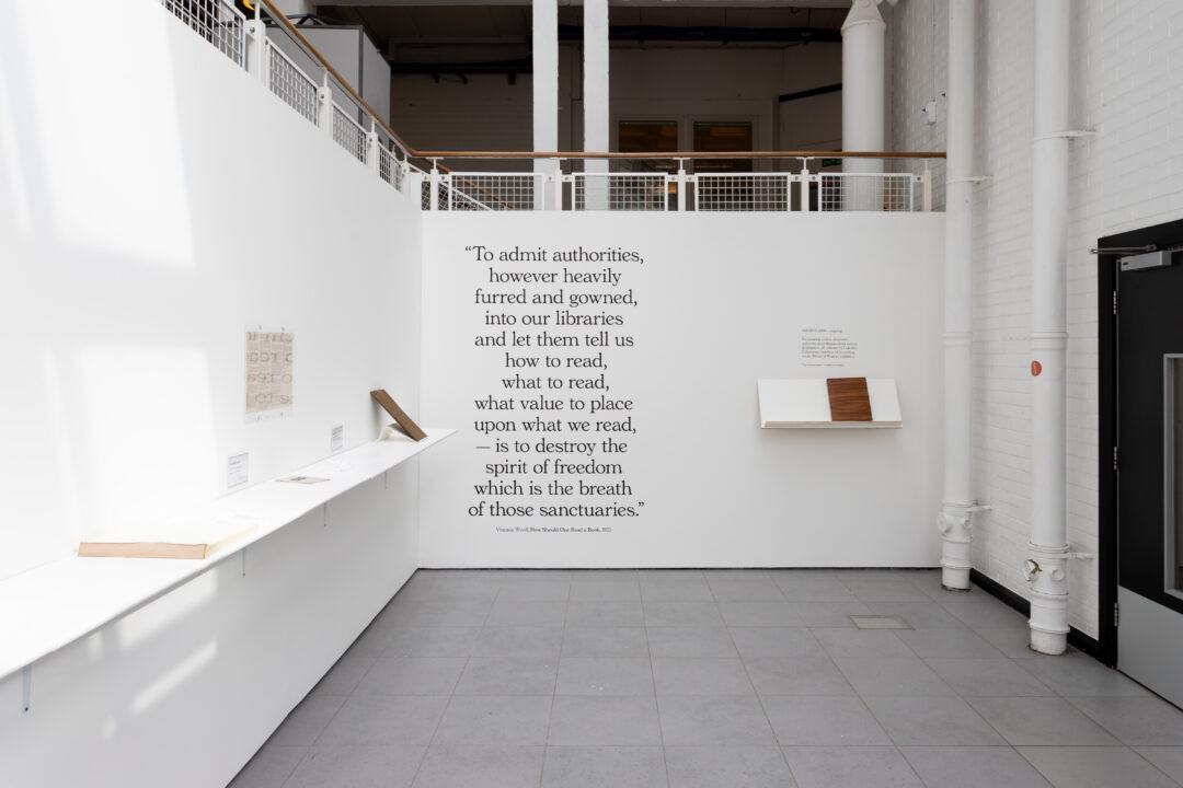 For our eighth display from the Bonington Archive, we are looking at an exhibition in our more recent history: House of Wisdom (September 27th – October 27th 2018). This exhibition was staged in the areas outside of the gallery and showcased hundreds of objects, books, articles, research and furniture which looked into the political power of books and libraries over the past century.