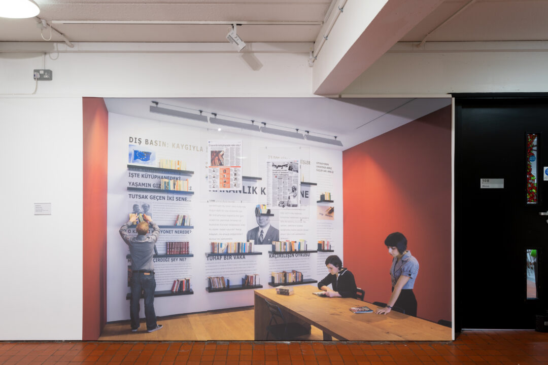 Curated by the Istanbul-based Collective Çukurcuma, House of Wisdom explores the political power of books and libraries in our century, and is presented as a travelling exhibition/library that explores the increasing levels of censorship on information and the current sociopolitical situation in and around Turkey. It started its journey in the non-profit art space, Dzialdov, Berlin. The show moved to Istanbul as part of the 15th Istanbul Biennial’s public program, and then to the art space Framer Framed in Amsterdam, as part of the Amsterdam Art Weekend 2017 programme.