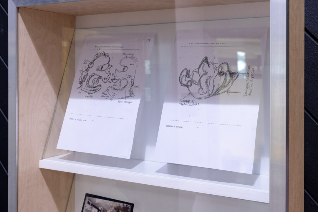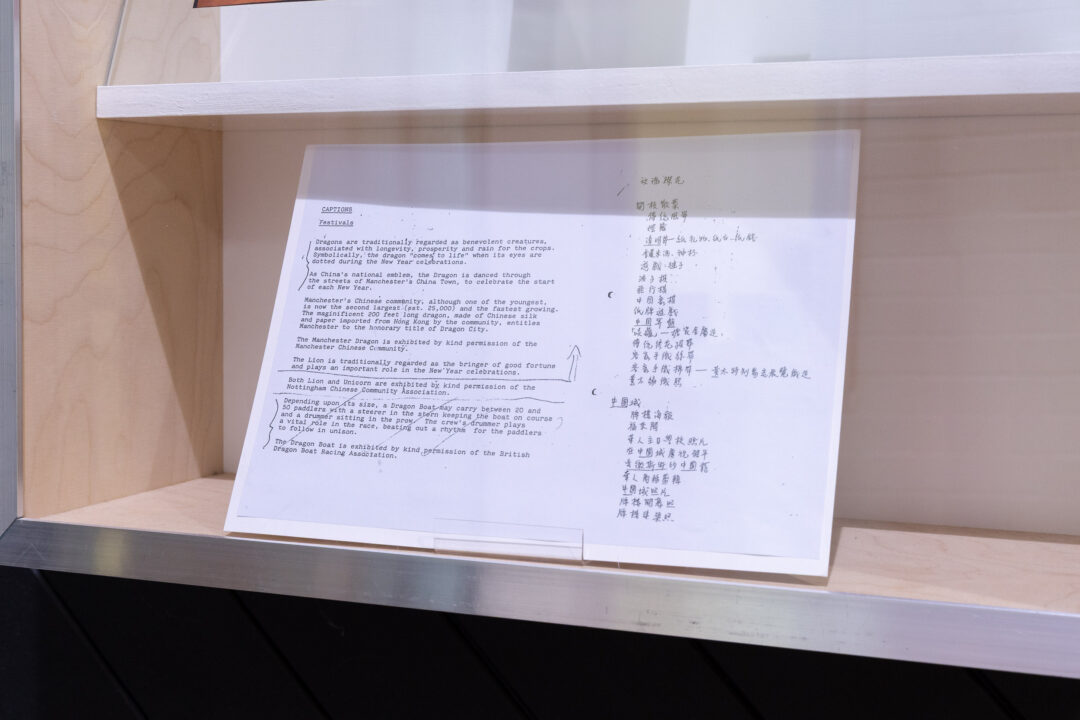 Curated by Alex Jovčić-Sas, the Archive cabinet contains photographs from the original exhibition, alongside condition drawings/reports for the main piece which sat in the centre of the gallery. There are also some of the original captions which have been written in mandarin and translated into English.